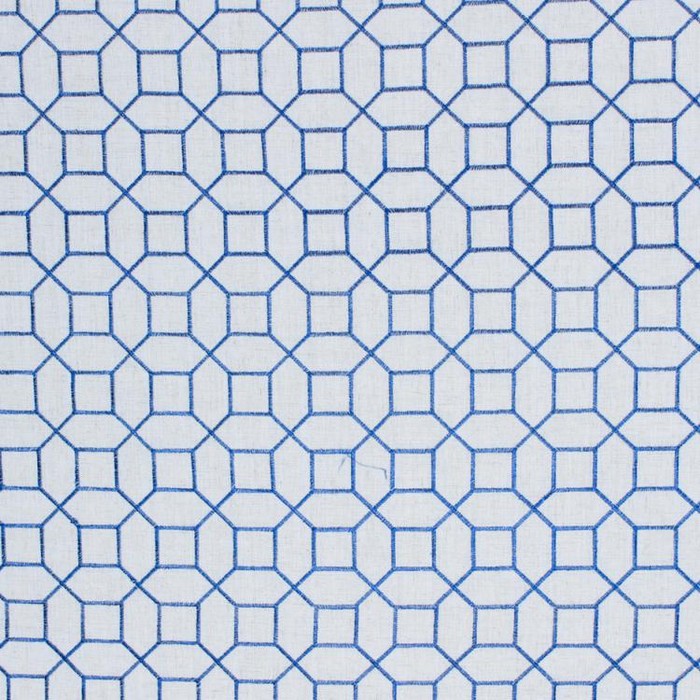 | Blue Lattice and Fretwork Fabric RM Coco Inspired Living Vol 10 Fretwork,Lattice,Transitional Embroidery, Linen/Blend |