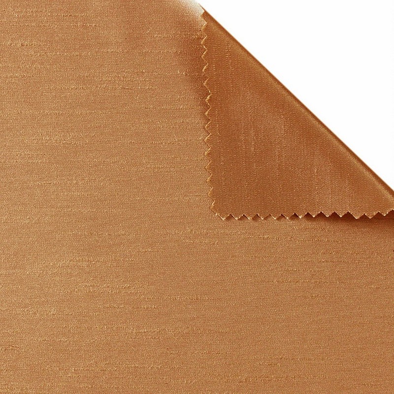 | Versatile brown satin texture on one side with dupioni/shantung faux silk look on the other, this elegant satin fabric has got you covered. Table linens, special occasion, drapes and curtains, pillows, bedding and clothing. |