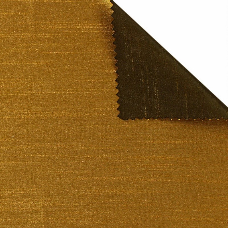 | Versatile gold satin texture on one side with dupioni/shantung faux silk look on the other, this elegant satin fabric has got you covered. Table linens, special occasion, drapes and curtains, pillows, bedding and clothing. |