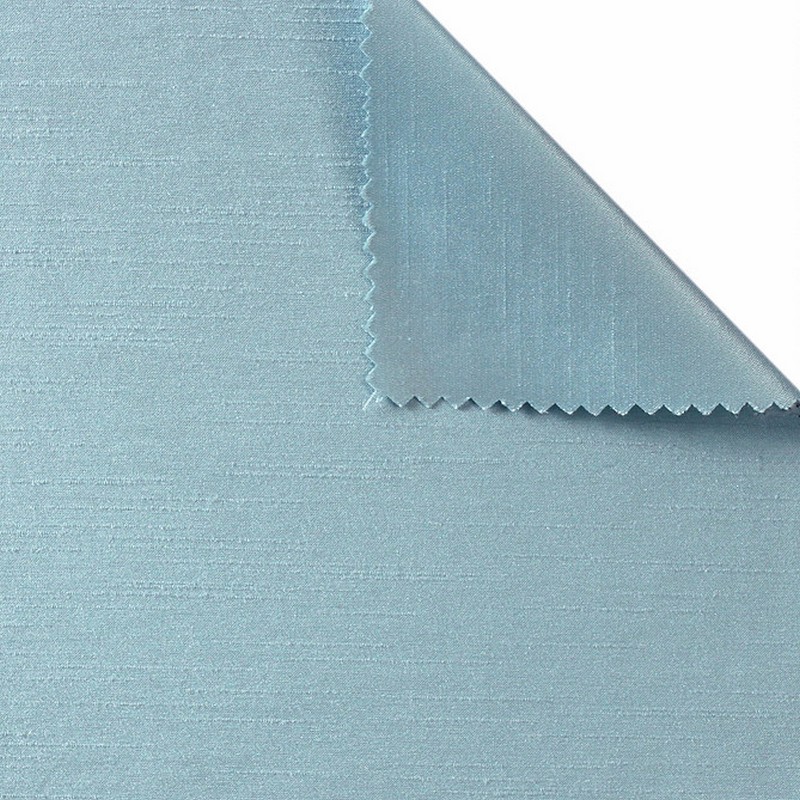 | Versatile blue satin texture on one side with dupioni/shantung faux silk look on the other, this elegant satin fabric has got you covered. Table linens, special occasion, drapes and curtains, pillows, bedding and clothing. |