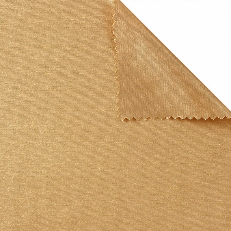 | Versatile gold satin texture on one side with dupioni/shantung faux silk look on the other, this elegant satin fabric has got you covered. Table linens, special occasion, drapes and curtains, pillows, bedding and clothing. |