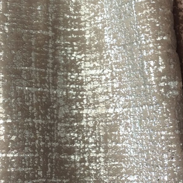 | Soft velvety fabric with a metallic, textured cross-hatch pattern embossed on the durable fabric. Color is the base color with silver metallic embossing. |