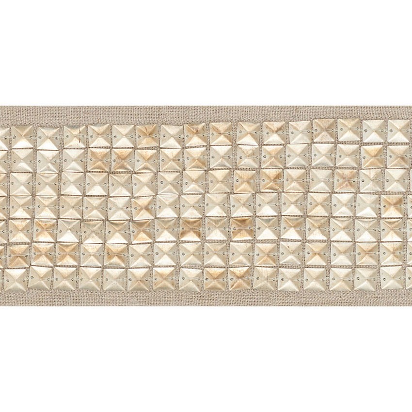 | Metallic hand-stitched paillettes on linen fabric tape. |