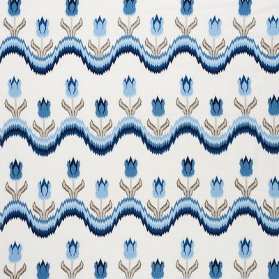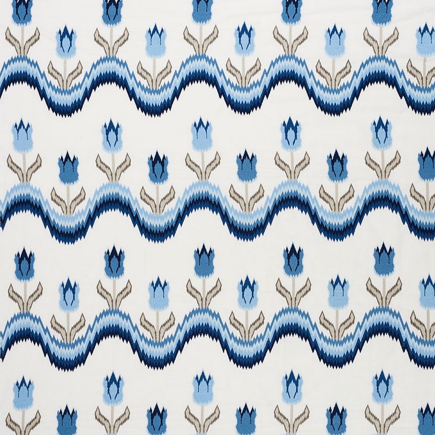 Schumacher Fabric TULIP FLAMESTITCH EMBROIDERY BLUE