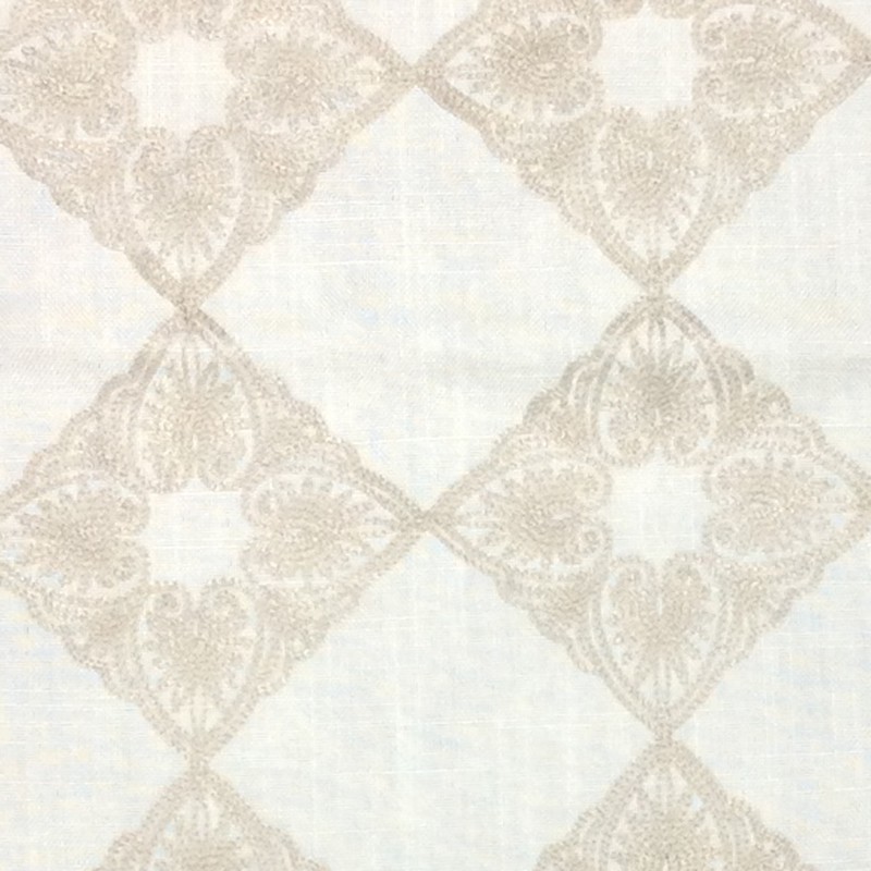 | Diamond embroidery measures 6 x 6 inches each. Linen blend drapery fabric with gorgeous embroidered diamonds. |
