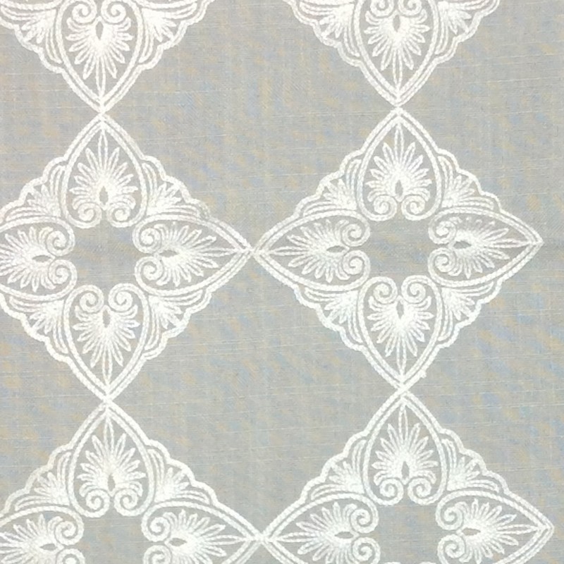 | Diamond embroidery measures 6 x 6 inches each. Linen blend drapery fabric with gorgeous embroidered diamonds. |