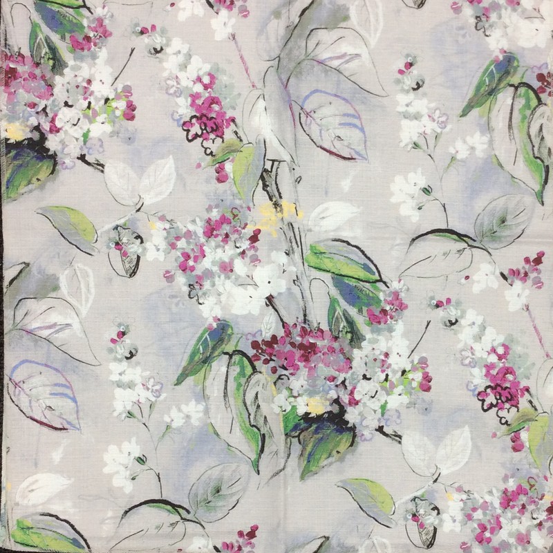 | Modern watercolor floral features a large pattern of leaves and flowers. Add beautiful artistry to your draperies, bedding and home decor accessories. Soil and stain repellent finish. |