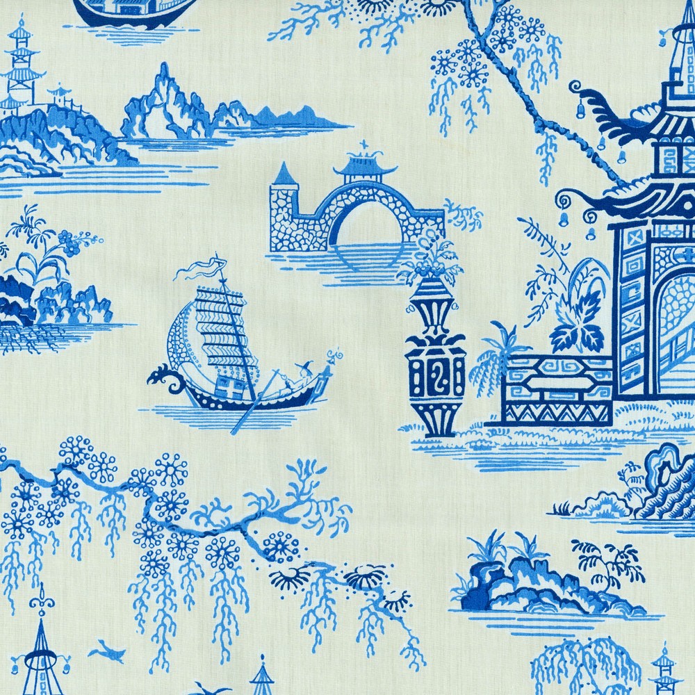 | Blue Oriental Toile Fabric Oriental Fabric Boats And Sailing Fabric |