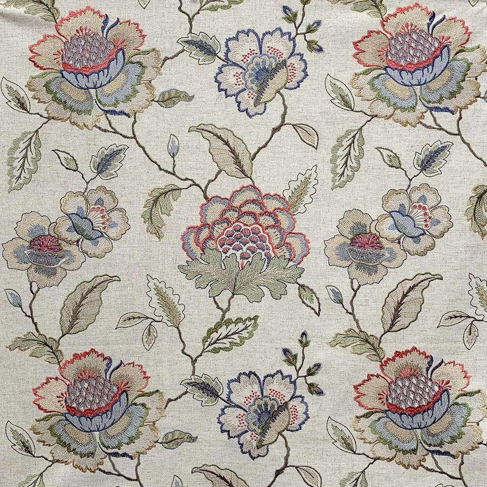 | Magnolia Multicolored Embroidery Drapery Fabric Pattern is Uproll Jacobean Floral Fabric Crewel And Embroidered Fabric |