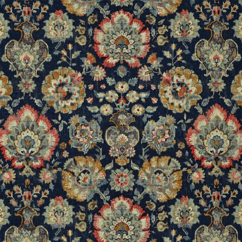 | Blue Jacobean Floral Fabric Floral Linen Fabric |