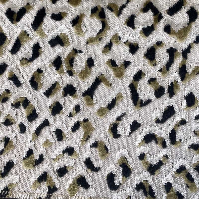 | Soft cut velvet animal print. The raised spots have multiple colors giving them depth. Fabulous animal skin fabric. |