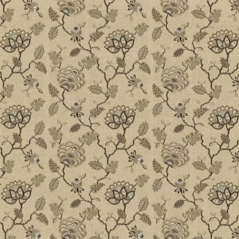 | Kasmir Beige Brown Cream Gray White Jacobean Floral Fabric |