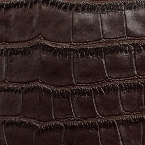 | Dark Brown Big Crocodile skin vinyl is shiny with vibrant color, texture and design. Exotic animal skin fabric for upholstery. Automotive, Residential, Conference Room, Recreational Vehicle, and General Upholstery 1 MM Thick Cleaning: Ordinary dirt and stains can be removed with mild soap and water. Rinse with clean water and dry with lint-free cloth. Moderate scrubbing with medium bristle brush will loosen soiling material. |