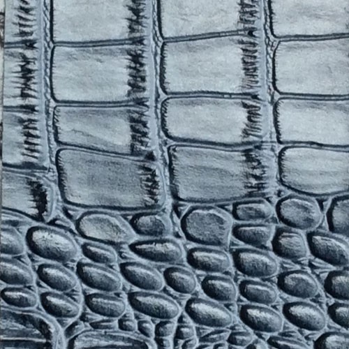 | Blue Grey Big Crocodile skin vinyl is shiny with vibrant color, texture and design. Exotic animal skin fabric for upholstery. Automotive, Residential, Conference Room, Recreational Vehicle, and General Upholstery 1 MM Thick Cleaning: Ordinary dirt and stains can be removed with mild soap and water. Rinse with clean water and dry with lint-free cloth. Moderate scrubbing with medium bristle brush will loosen soiling material. |