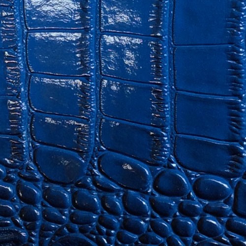 | Royal Blue Big Crocodile skin vinyl is shiny with vibrant color, texture and design. Exotic animal skin fabric for upholstery. Automotive, Residential, Conference Room, Recreational Vehicle, and General Upholstery 1 MM Thick Cleaning: Ordinary dirt and stains can be removed with mild soap and water. Rinse with clean water and dry with lint-free cloth. Moderate scrubbing with medium bristle brush will loosen soiling material. |