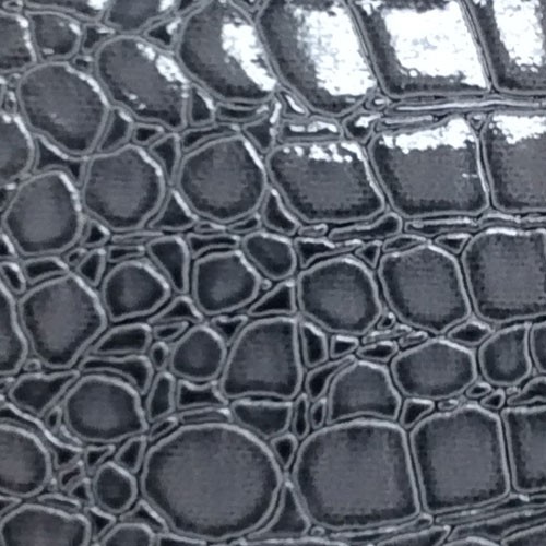 | Grey Croco Leather crock skin vinyl is super shiny with vibrant color, texture and design. Exotic animal skin fabric for upholstery. Automotive, Residential, Conference Room, Recreational Vehicle, and General Upholstery 1 MM Thick Cleaning: Ordinary dirt and stains can be removed with mild soap and water. Rinse with clean water and dry with lint-free cloth. Moderate scrubbing with medium bristle brush will loosen soiling material. |