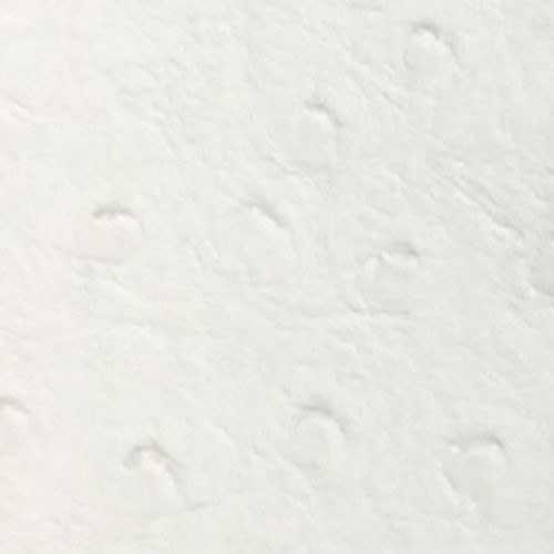 | White Ostrich skin vinyl with texture and design. Exotic animal skin fabric for upholstery. Automotive, Residential, Conference Room, Recreational Vehicle, and General Upholstery 1 MM Thick Cleaning: Ordinary dirt and stains can be removed with mild soap and water. Rinse with clean water and dry with lint-free cloth. Moderate scrubbing with medium bristle brush will loosen soiling material. |
