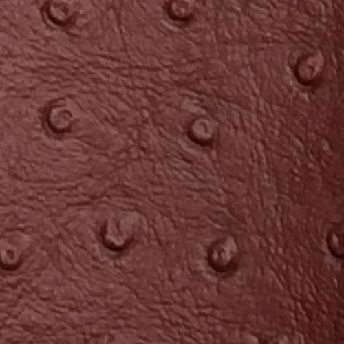 | Burgandy Ostrich skin vinyl with texture and design. Exotic animal skin fabric for upholstery. Automotive, Residential, Conference Room, Recreational Vehicle, and General Upholstery 1 MM Thick Cleaning: Ordinary dirt and stains can be removed with mild soap and water. Rinse with clean water and dry with lint-free cloth. Moderate scrubbing with medium bristle brush will loosen soiling material. |