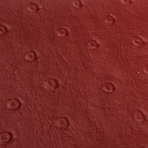 | Red Ostrich skin vinyl with texture and design. Exotic animal skin fabric for upholstery. Automotive, Residential, Conference Room, Recreational Vehicle, and General Upholstery 1 MM Thick Cleaning: Ordinary dirt and stains can be removed with mild soap and water. Rinse with clean water and dry with lint-free cloth. Moderate scrubbing with medium bristle brush will loosen soiling material. |