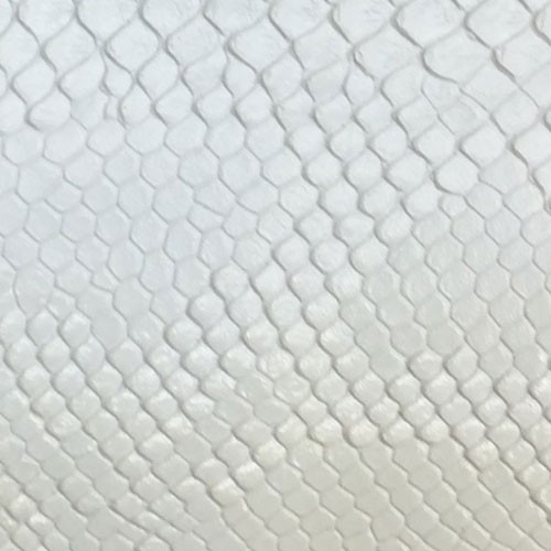 | White Serpiente snake skin vinyl is multi-faceted with texture and design. Exotic animal skin fabric for upholstery. Automotive, Residential, Conference Room, Recreational Vehicle, and General Upholstery 1 MM Thick Cleaning: Ordinary dirt and stains can be removed with mild soap and water. Rinse with clean water and dry with lint-free cloth. Moderate scrubbing with medium bristle brush will loosen soiling material. |