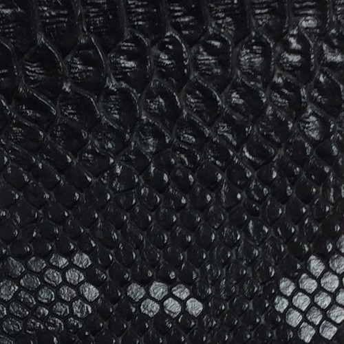 | Black Serpiente snake skin vinyl is multi-faceted with texture and design. Exotic animal skin fabric for upholstery. Automotive, Residential, Conference Room, Recreational Vehicle, and General Upholstery 1 MM Thick Cleaning: Ordinary dirt and stains can be removed with mild soap and water. Rinse with clean water and dry with lint-free cloth. Moderate scrubbing with medium bristle brush will loosen soiling material. |