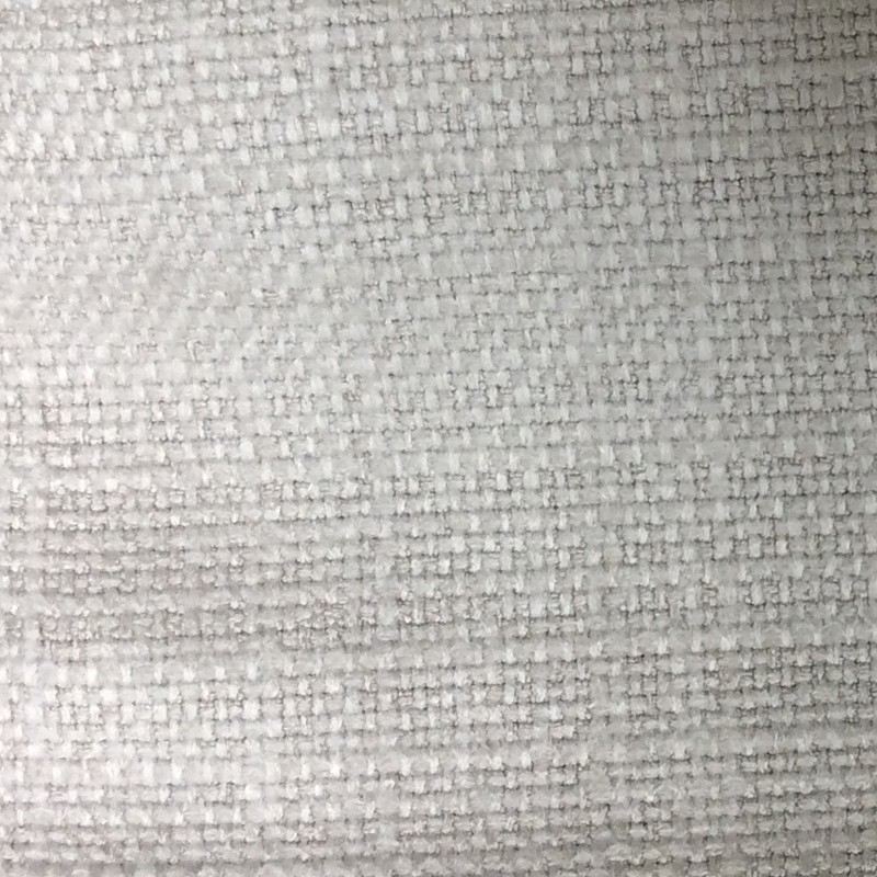 Linen look woven upholstery fabric with a soft hand. FR treatment applied. Light Grey