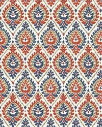 | Kasmir Prints Navy Blue Olive Red White Damask/Imberline Transitional Traditional Medium Scale |