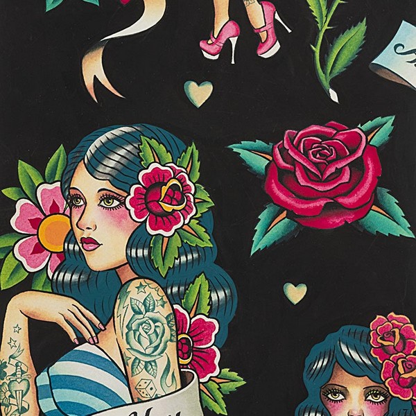 | 24" Repeat - Girl standing next to playing cards is about 8.25" tall Pin Up Fabric |