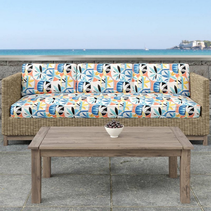 | Fabric All Seasons V Orange Suitable for Commercial Use Hospitality Outdoor Use Marine Residential Bedding Shown Not Railroaded, Non-Directional Floral Outdoor Fabric |