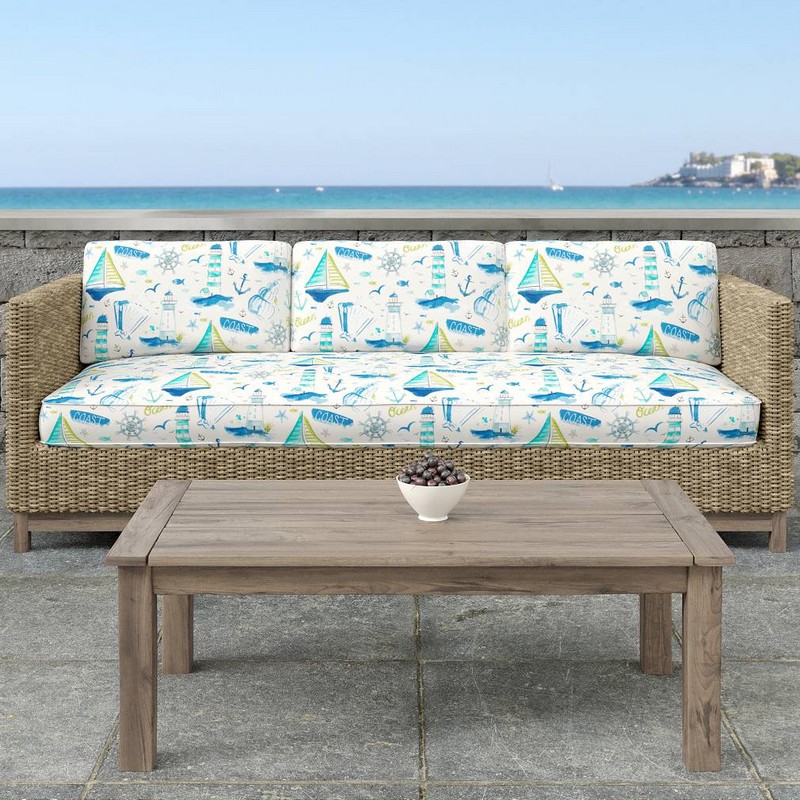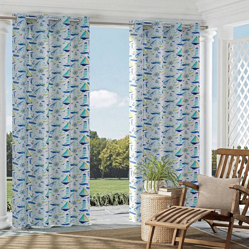 | Fabric All Seasons V Blue Suitable for Commercial Use Hospitality Outdoor Use Marine Residential Bedding Shown Not Railroaded (Up the Roll) Fun Print Outdoor Fabrics Boats And Sailing Fabric |