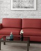 | Fabric Elegant Damasks Red Suitable for Commercial Use Hospitality Residential Bedding Shown Not Railroaded (Up the Roll) Diamond Ogee Fabric |