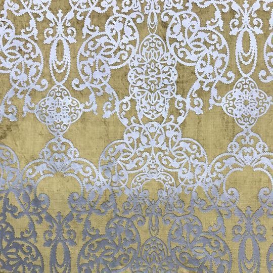| Foil metallic print on velvet. Classic damask print style on medium weight velvet. |