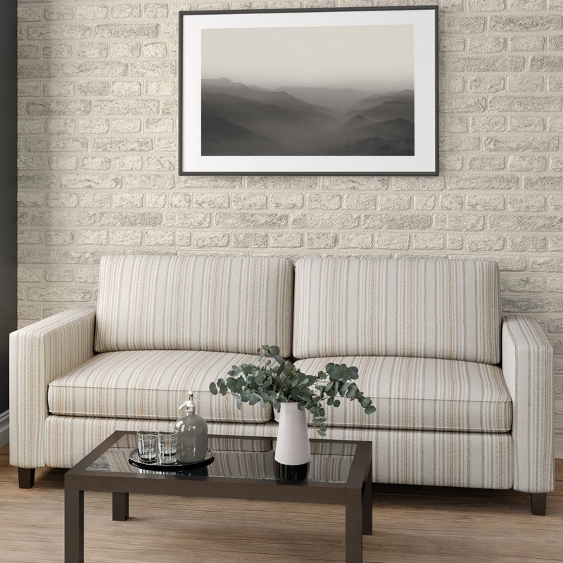 | Charlotte Fabrics Rustic Wovens Beige/Tan Suitable for Commercial Use Residential Shown Railroaded (Across The Roll) Small Striped Fabric |