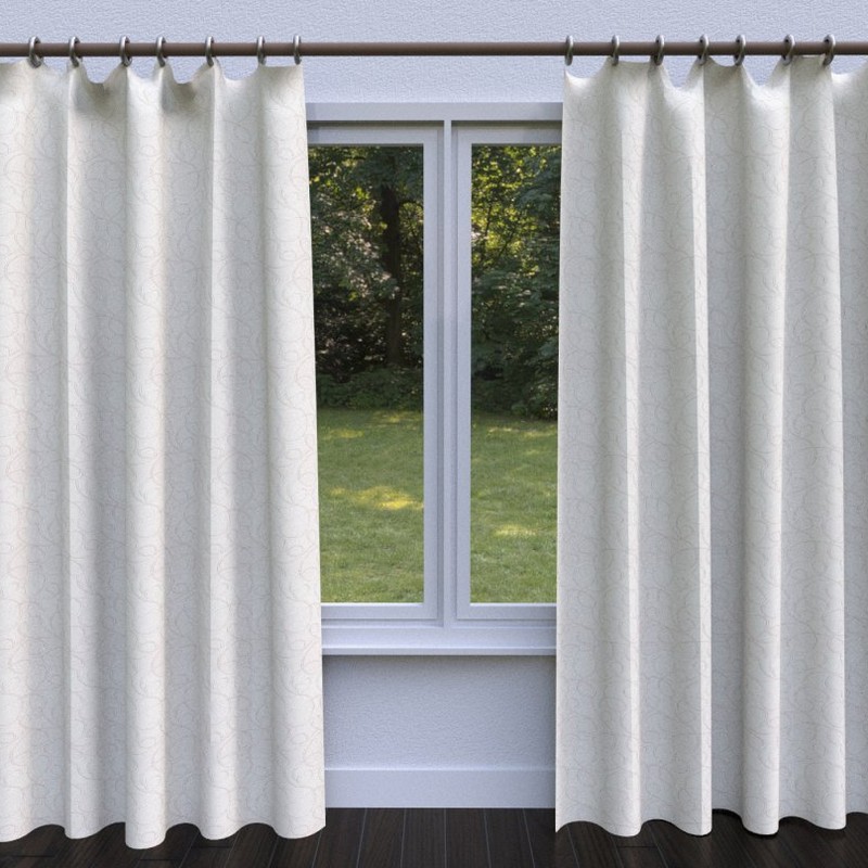 | Charlotte Select Drapery & Sheers Embroidered Linens White Suitable for Commercial Use Hospitality Residential Bedding Shown Not Railroaded (Up the Roll) Scroll Fabric |