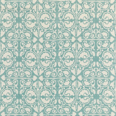 | PRINT GEOMETRIC LINDIENNE COLLECTION KRAVET BASICS CALENDERED ; Colors: TEAL WHITE MINERAL Lattice And Fretwork Fabric |