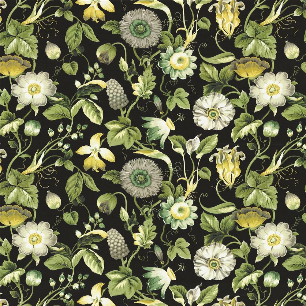 Kasmir Prints Black Charcoal Dark Green Gray Light Green White Yellow Black