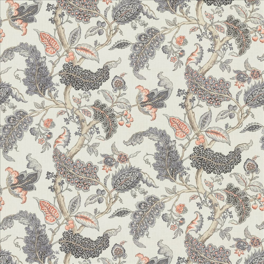 | Kasmir Prints Beige Brown Charcoal Cream Gray Pink Orange Jacobean Leaf/Foliage/Vine Traditional Large Scale |