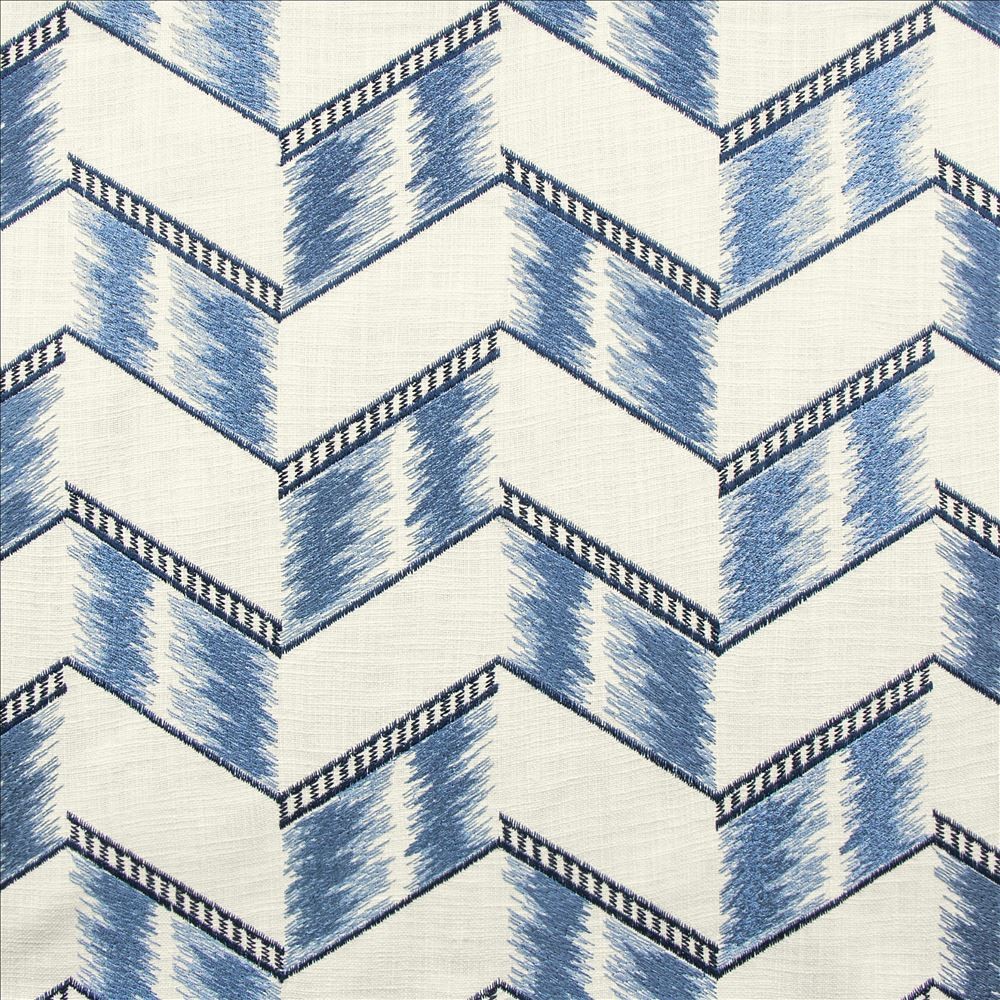 | Kasmir Embroidery/Crewel Baby Blue Blue Cream Navy Blue Small Scale Contemporary Transitional Medium Scale Wide Striped Fabric Zig Zag Fabric |