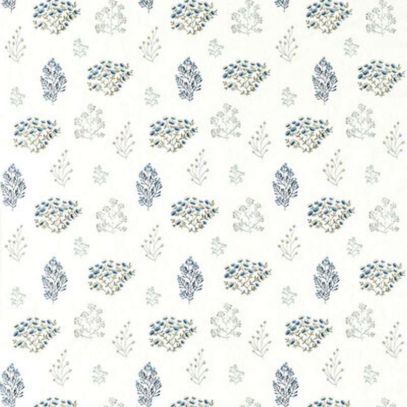 | EMBROIDERY BOTANICAL/FLORALS CLARKE & CLARKE BOTANIST CLARKE AND CLARKE EMBROIDERED ; Colors: WHITE BLUE MINERAL |