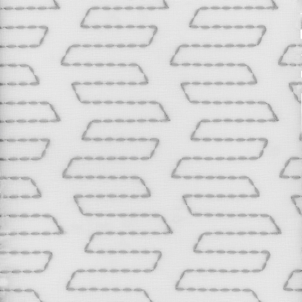Roth and Tompkins Textiles Sydney Silver Silver Polyester Fire Rated Fabric Geometric Crewel and Embroidered NFPA 701 Flame Retardant fabric by the yard.