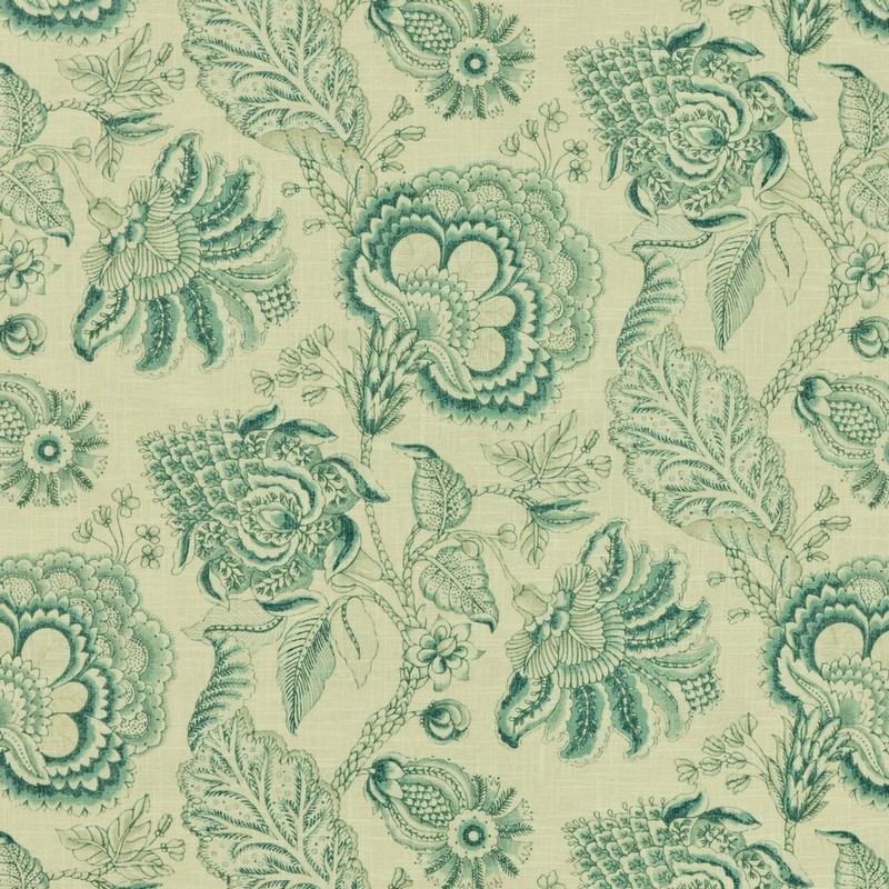 | Blue Jacobean Floral Fabric Floral Linen Fabric |