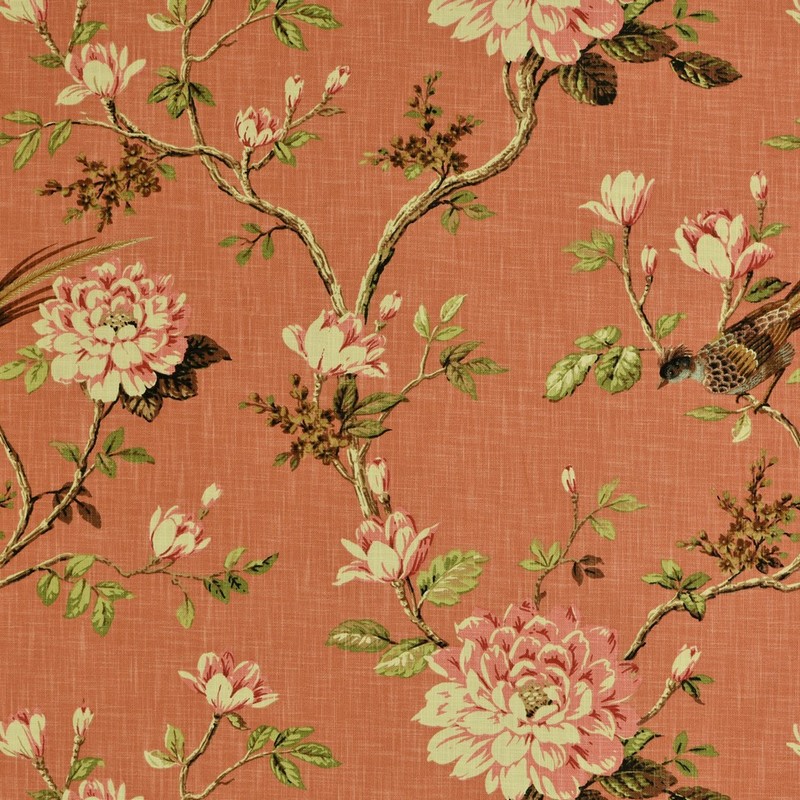 | Orange Large Print Floral Fabric Scrolling Vines Fabric |