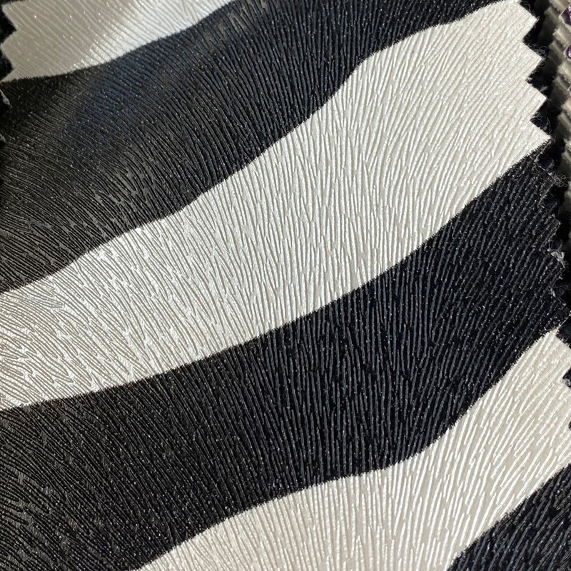 | Zebra faux leather with a distinct textured ground that give the appearance of hide. This shiny black and white stripe zebra skin pattern is inherently stain resistant and cleans with soap and water. Animal Print Fabric Animal Vinyl Fabric Animal Skin Fabric |