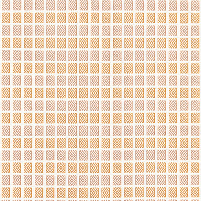 | SMALL Scale CORAL|IVORY / CREAM|ORANGE|PEACH / APRICOT FOLKLORE Grey Watkins Squares Fabric Check Fabric |