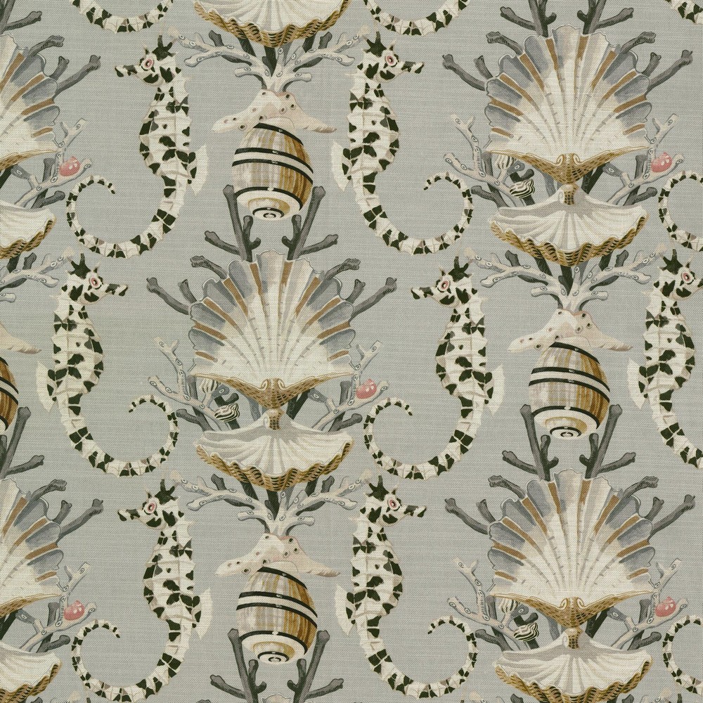 | Fabulous seahorse and sea shell fabric. Water repellant. |