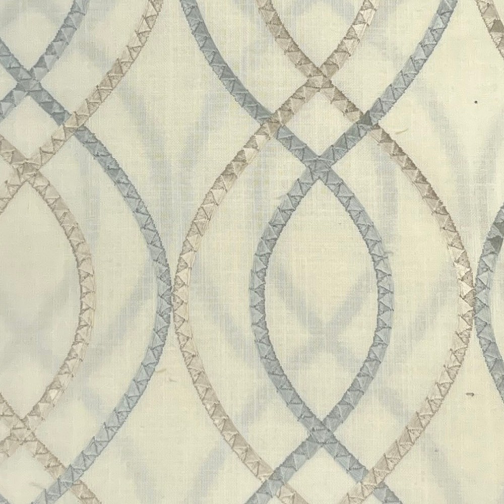 | Scrolling lattice embroidery. Pattern runs up the roll. |