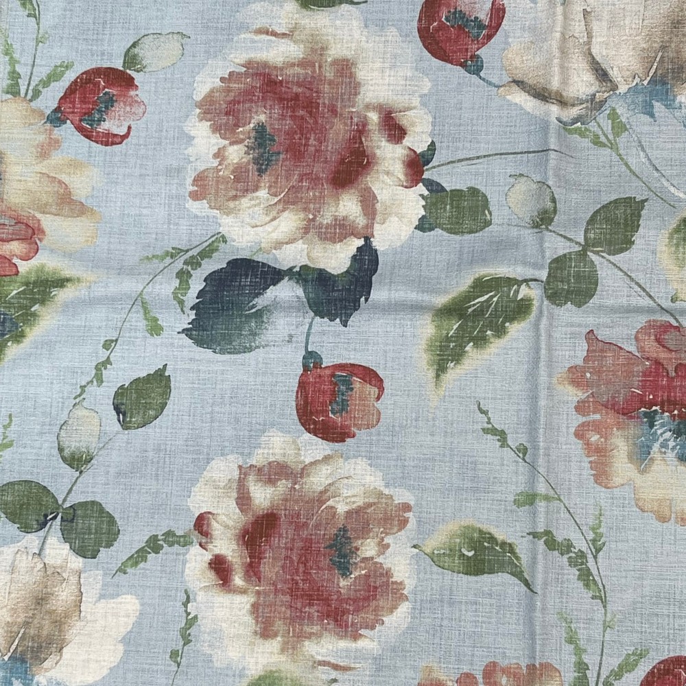 | Large scale watercolor floral with beautiful colors. Pattern runs up the roll and includes a soil and stain repellent finish. |