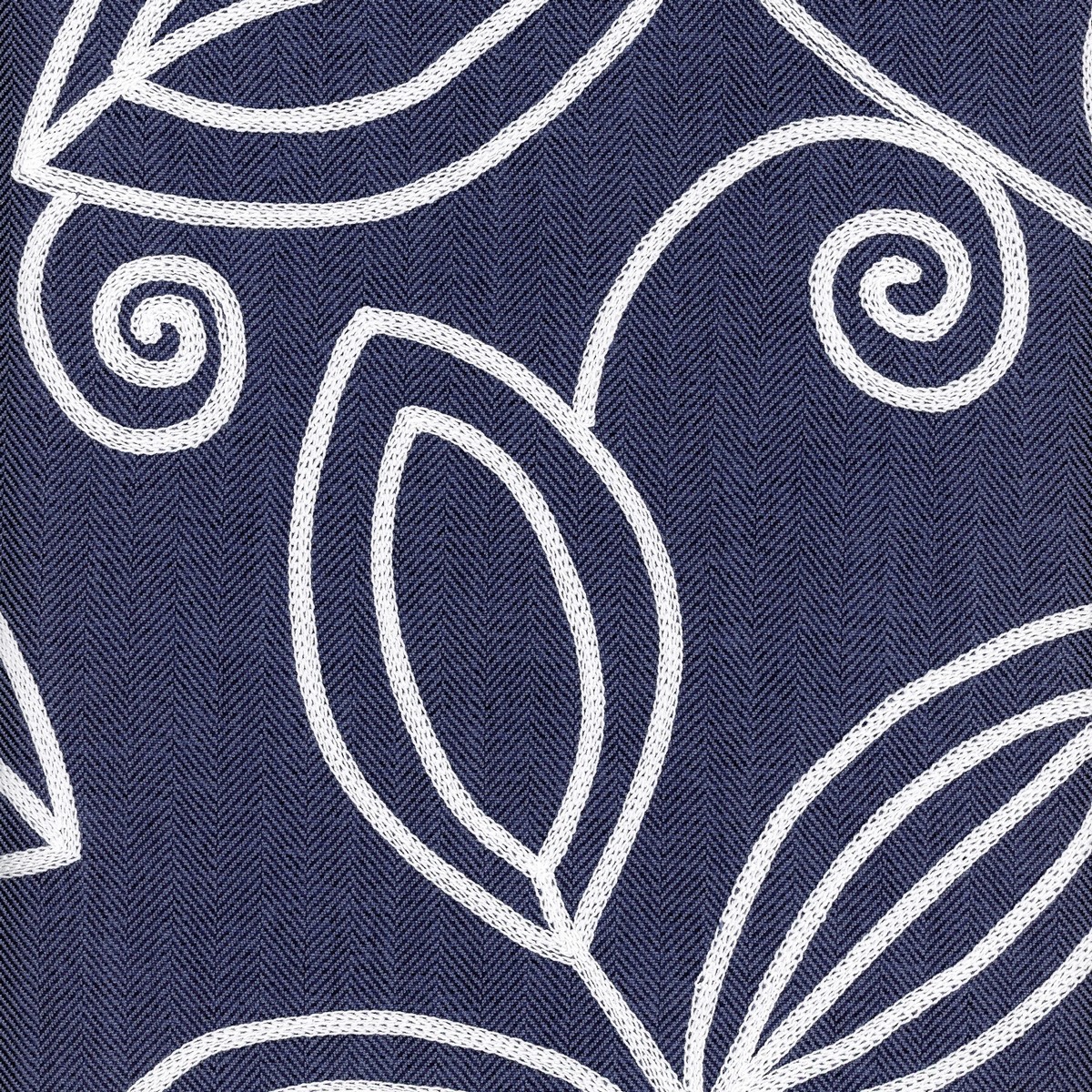 Heritage Fabrics Botanique Indigo Blue Polyester Crewel and Embroidered Leaves and Trees Floral Embroidery fabric by the yard.