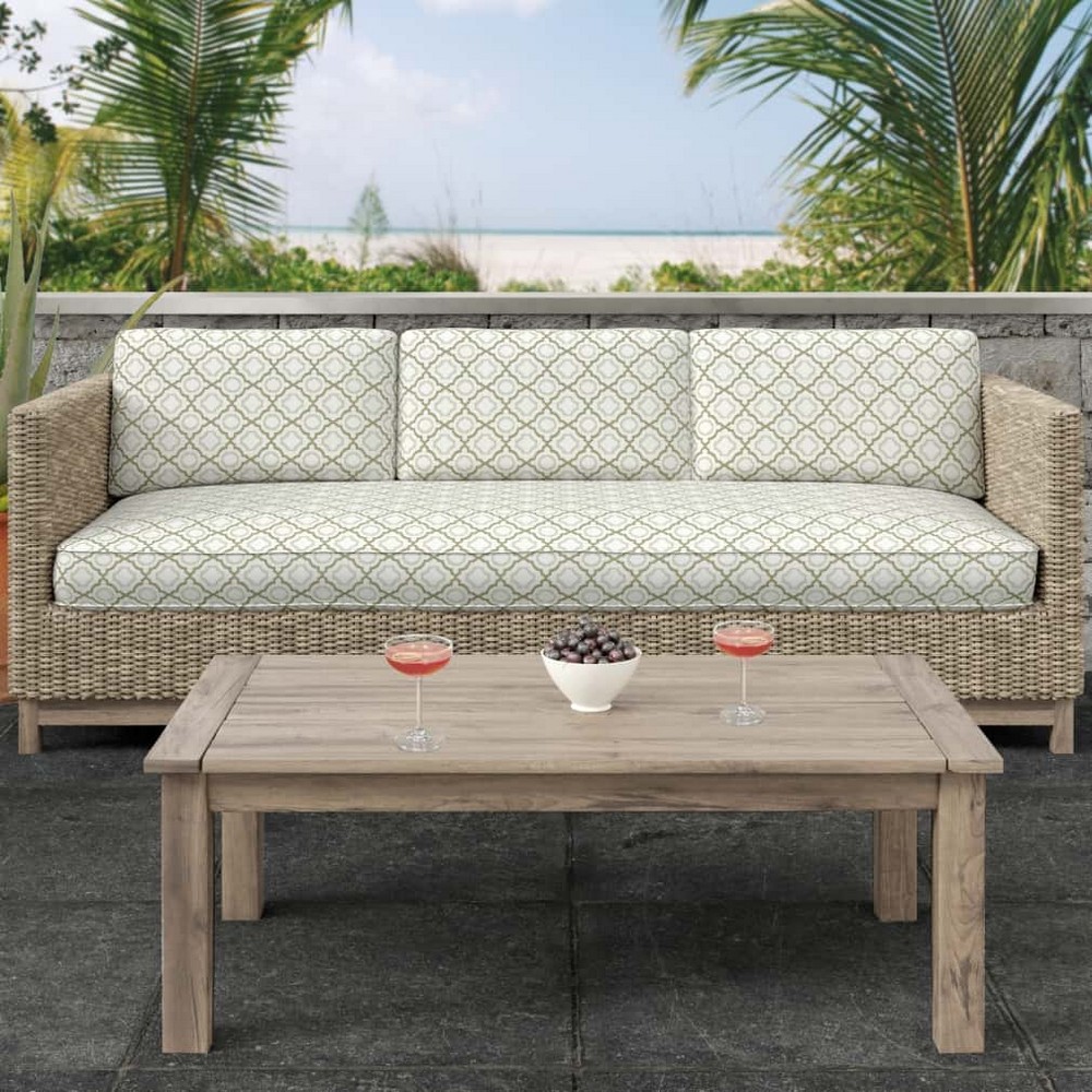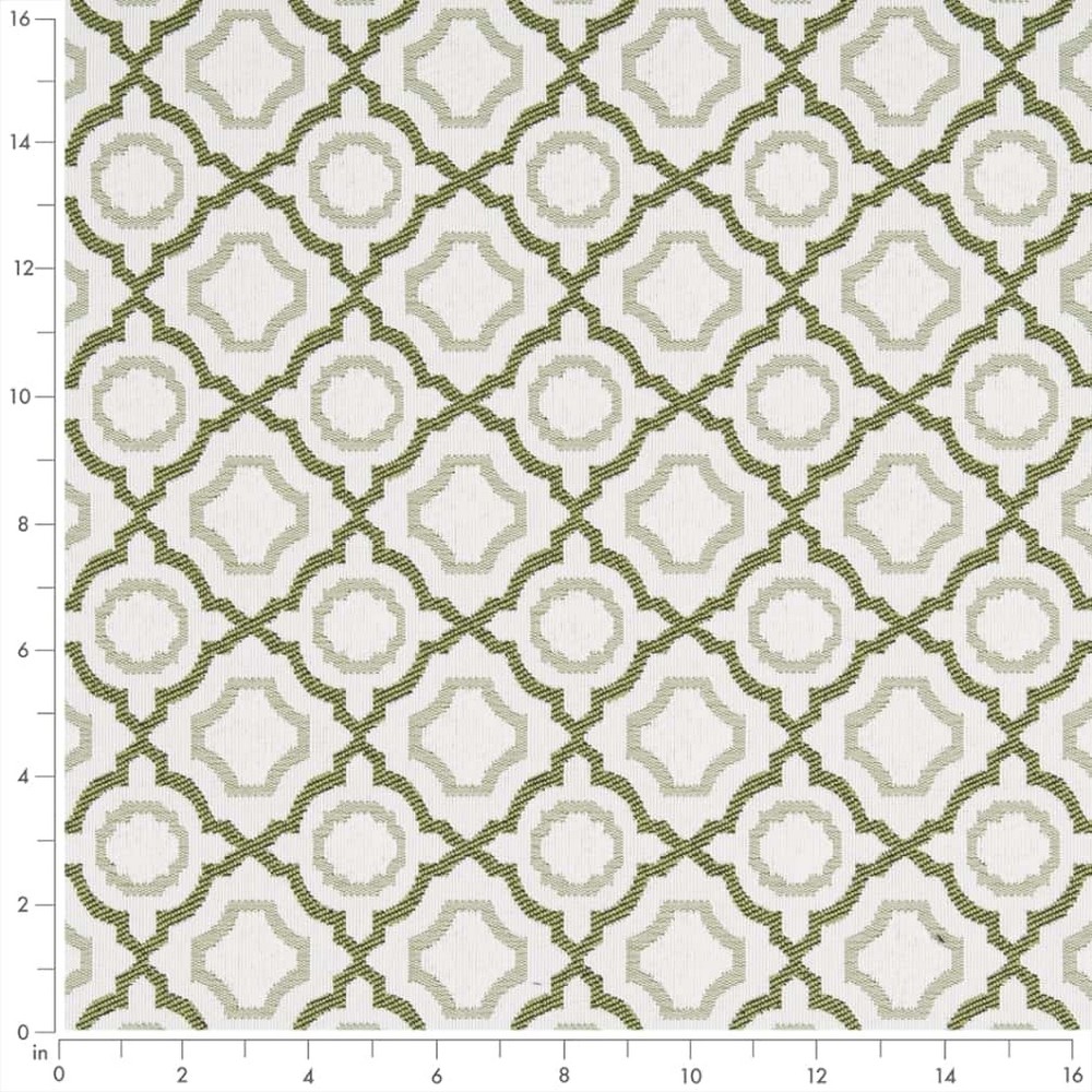 | Charlotte Fabrics Veranda Green Suitable for Commercial Use Hospitality Outdoor Use Marine Residential Weather Resistant: Repels Liquid, Stain, Fade, Mildew & Bacteria Upcycled Fibers, Non PFOA and PFOS Stain Resistance, Greenguard Gold Certified Pet Friendly Stain Resistant Water Resistant Fade Resistant Shown Railroaded (Across The Roll) |