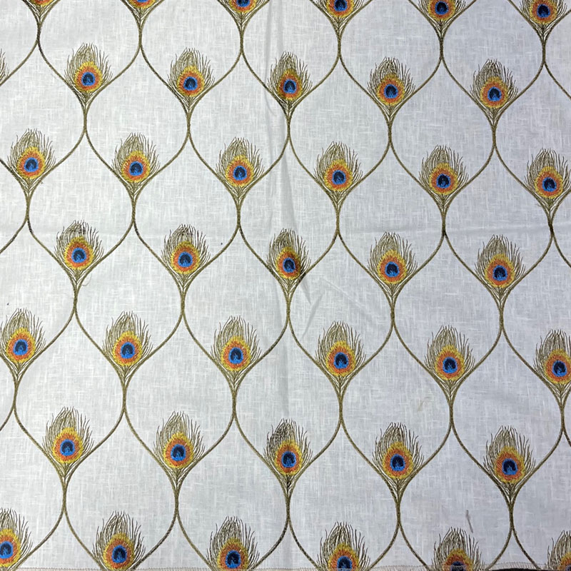 | Diamond ogee linen pattern with a peacock feather. Printed Linen Fabric Birds And Feather Fabric Diamond Ogee Fabric Crewel And Embroidered Fabric |
